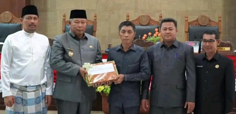 Bupati Kepulauan Anambas, Abdul Haris Menyerahkan Dokumen Nota Keuangan dan Ranperda RPJP tahun 2025-2045 Kepada Wakil Ketua I, Syamsil Umri, Kamis(20/6).