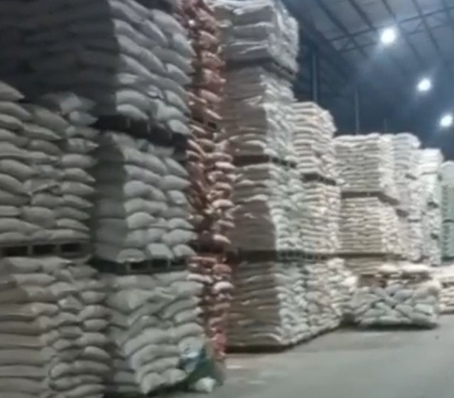 Karung-karung beras yang diduga bagian dari distribusi tidak resmi tampak siap dipindahkan. Proses pendalaman dan verifikasi dari otoritas masih berlangsung. Senin (24/11).