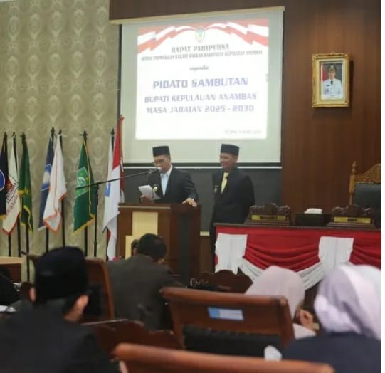 Anambas, (Advetorial) — Dengan suara lantang dan penuh semangat, Bupati Kepulauan Anambas terpilih, Aneng, menyampaikan pidato perdananya di hadapan anggota DPRD, Forkopimda, dan jajaran pemerintah daerah dalam Sidang Paripurna DPRD Kabupaten Kepulauan Anambas, Kamis (6/3/2025). Dalam pidato yang menjadi momen bersejarah itu, Aneng menegaskan komitmennya untuk segera merealisasikan seluruh program prioritas dan unggulan yang pernah ia janjikan bersama Wakil Bupati Raja Bayu saat masa kampanye Pilkada 2024 lalu.