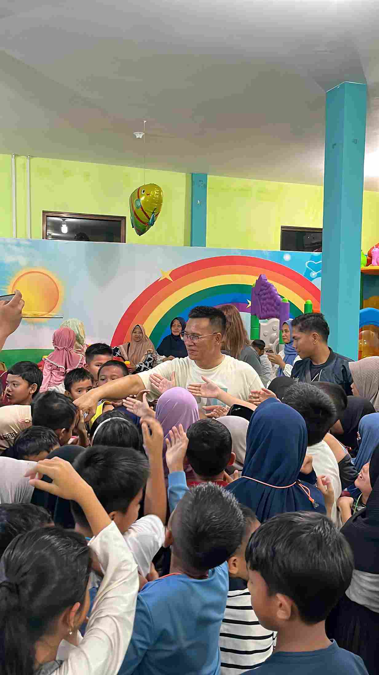 Suasana keakraban tampak nyata ketika Ibu Sinta dengan tulus bercanda bersama anak-anak, membuat mereka merasa dekat dan nyaman. Bahkan, Bapak Bupati ikut duduk di lantai, larut mendengarkan cerita polos anak-anak, seolah menjadi bagian dari kebersamaan yang hangat pada malam tersebut.