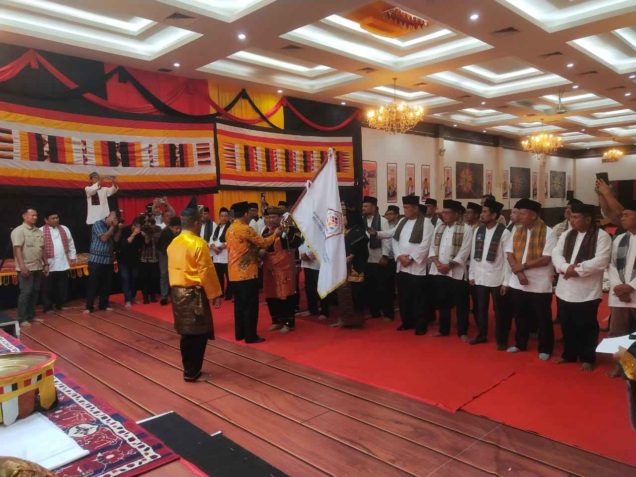 Pengukuhan Keluarga Besar Rumah Gadang (KBRG) Provinsi Kepulauan Riau berlangsung khidmat di Ballroom D Golden Prawn, Bengkong, Batam, Sabtu (27/9). Perbesar