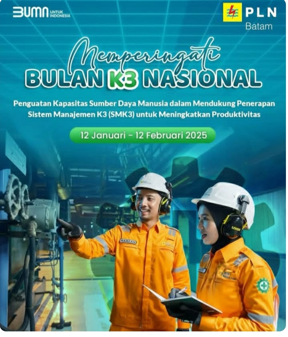 Batam — PT PLN Batam turut memperingati Bulan Keselamatan dan Kesehatan Kerja (K3) Nasional yang berlangsung mulai 12 Januari hingga 12 Februari 2025. Mengusung tema “Penguatan Kapasitas Sumber Daya Manusia dalam Mendukung Penerapan Sistem Manajemen K3 (SMK3) untuk Meningkatkan Produktivitas”, PLN Batam menegaskan komitmennya terhadap penerapan budaya kerja yang aman dan sehat.