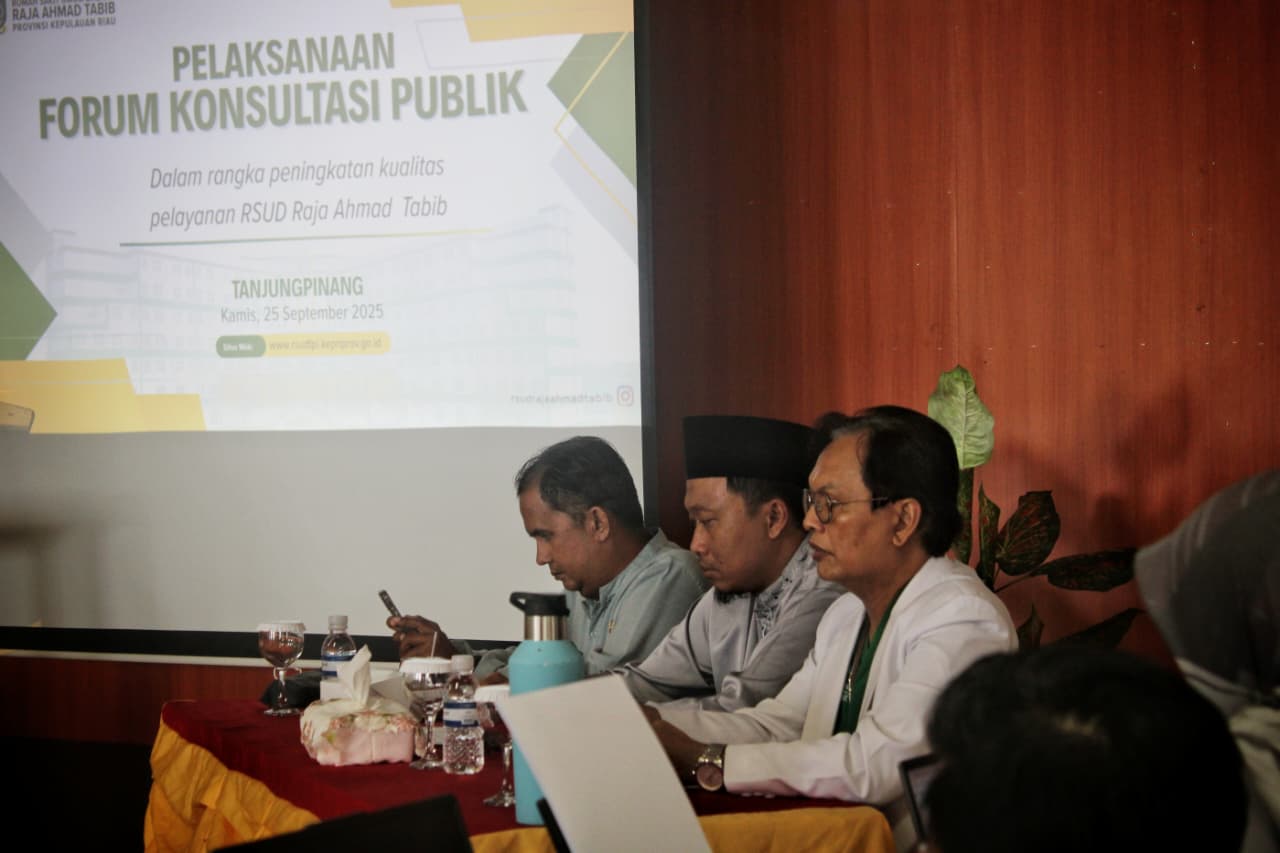 Tanjungpinang – Rumah Sakit Umum Daerah (RSUD) Raja Ahmad Tabib (RAT) Provinsi Kepulauan Riau menggelar Forum Konsultasi Publik (FKP) 2025 di Aula Lantai IV, Kamis, 25 September 2025. Forum ini menjadi ruang dialog strategis antara manajemen rumah sakit dengan pemangku kepentingan untuk memperkuat transparansi, akuntabilitas, serta partisipasi publik dalam peningkatan layanan kesehatan.
