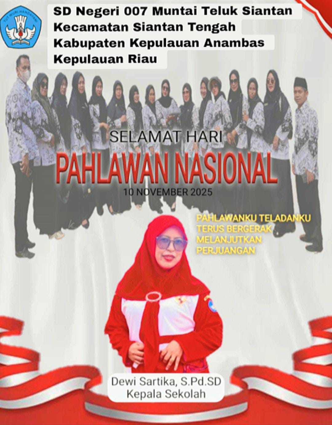 Anambas – Dalam rangka memperingati Hari Pahlawan Nasional ke-80, seluruh siswa, pendidik, dan tenaga kependidikan SD Negeri 007 Muntai di Desa Teluk Siantan, Kecamatan Siantan Tengah, Kabupaten Kepulauan Anambas, mengikuti upacara bendera yang digelar pada Senin (10/11/2025).